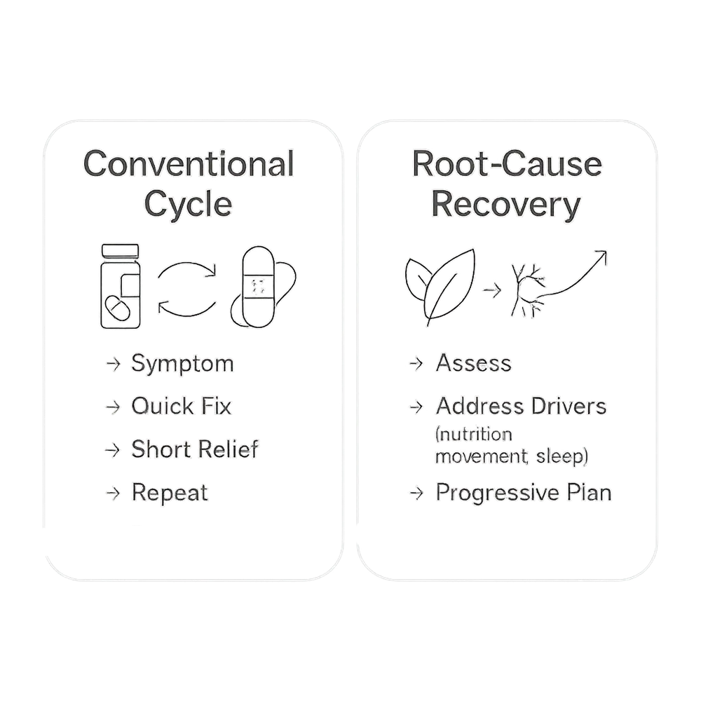Think of your body like a car. When the “check engine” light comes on, you don’t just cover it with tape — you fix the real problem.
